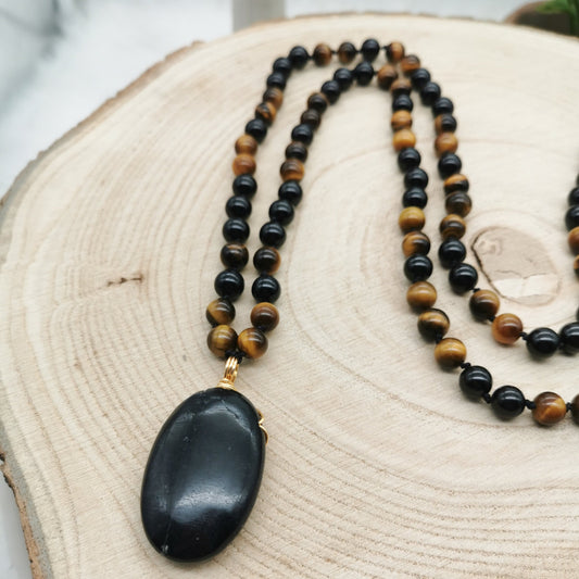 AusverkauftSchwarzer Turmalin-Tigerauge Mala Kette